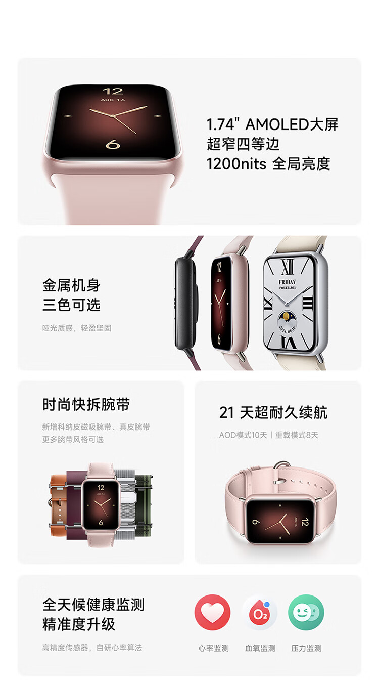 商品名称:小米(MI)手环9Pro粉金 智能手环 高精度运动健康 睡眠呼吸暂停监测 心率血氧监测运动手环送男友送女友
