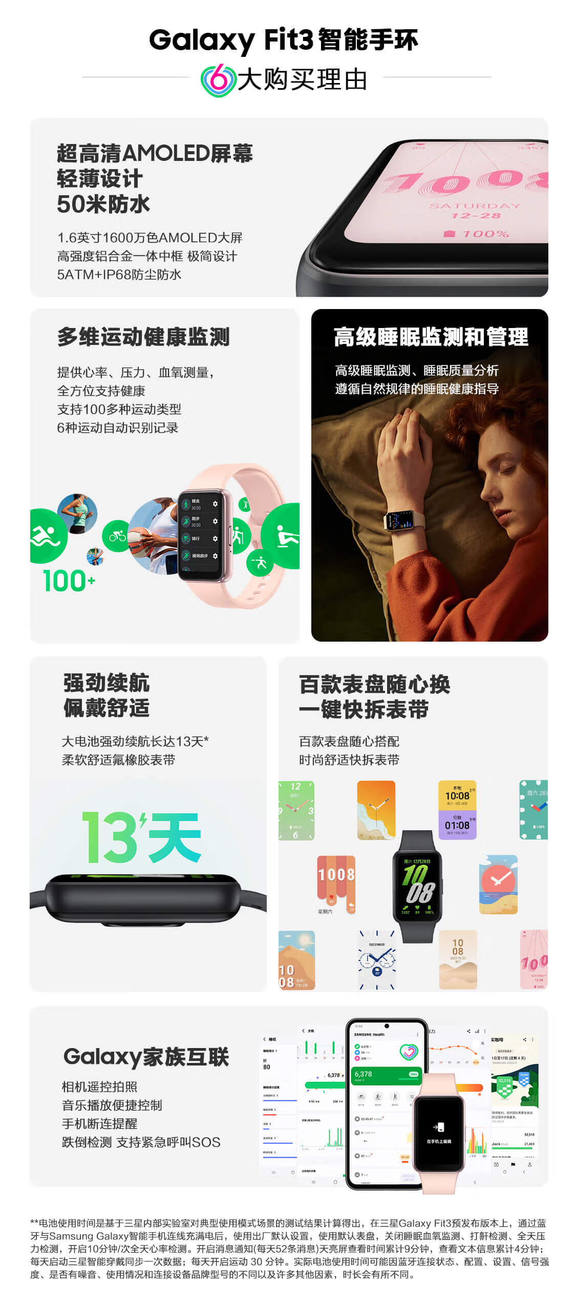 三星 Samsung【国家补贴】Fit3 智能手环/运动手环1.6英寸AMOLED大屏 水墨黑 男女手环