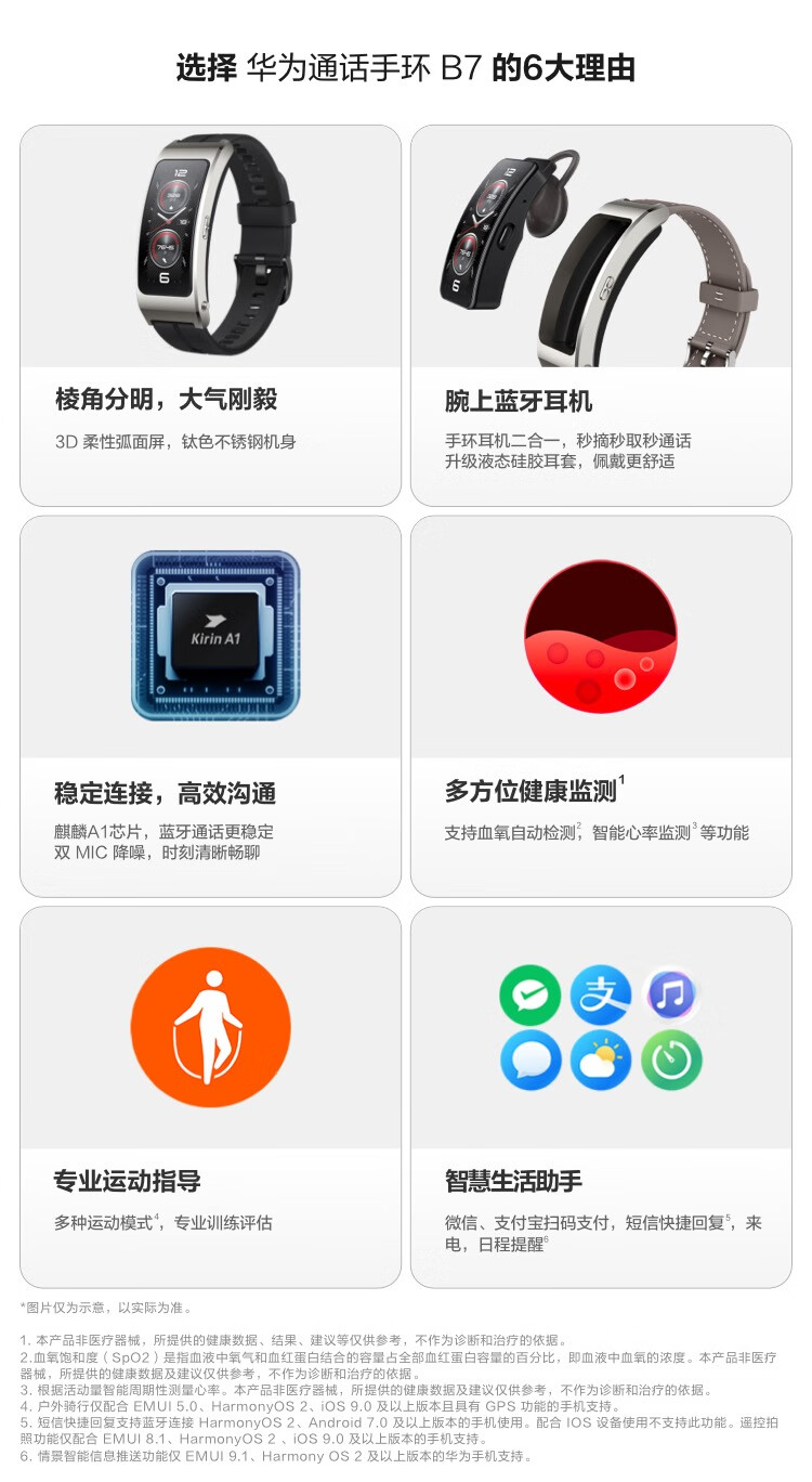 商品名称:华为通话手环 B7华为手环智能手环腕上蓝牙耳机曜金黑 男女