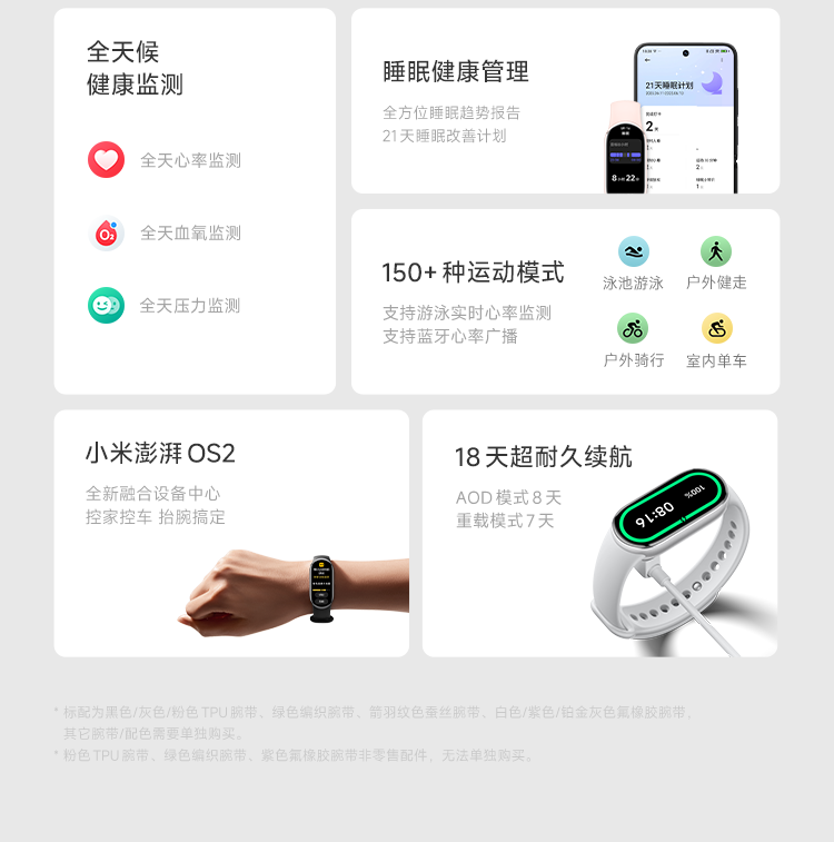 商品名称:小米智能手环10/10NFC版 专业运动健康 监测睡眠管理 心率血氧长续航运动 小米手环10 NFC版 银色